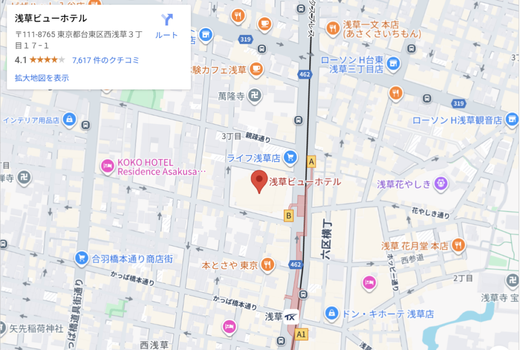 東京都台東区西浅草3-17-1 浅草ビューホテル内